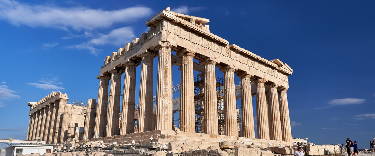 Dens marmorsøjler, der forsigtigt vippes mod midten, skaber en illusion af perfekt symmetri, hvilket demonstrerer antikke græske arkitekters genialitet. Frisen, der dekorerer templet, fortæller historier fra græsk mytologi, og inviterer beskueren til at rejse tilbage i tiden. På trods af århundreders forløb og adskillige modgang udstråler Parthenon stadig ekstraordinær styrke og skønhed.